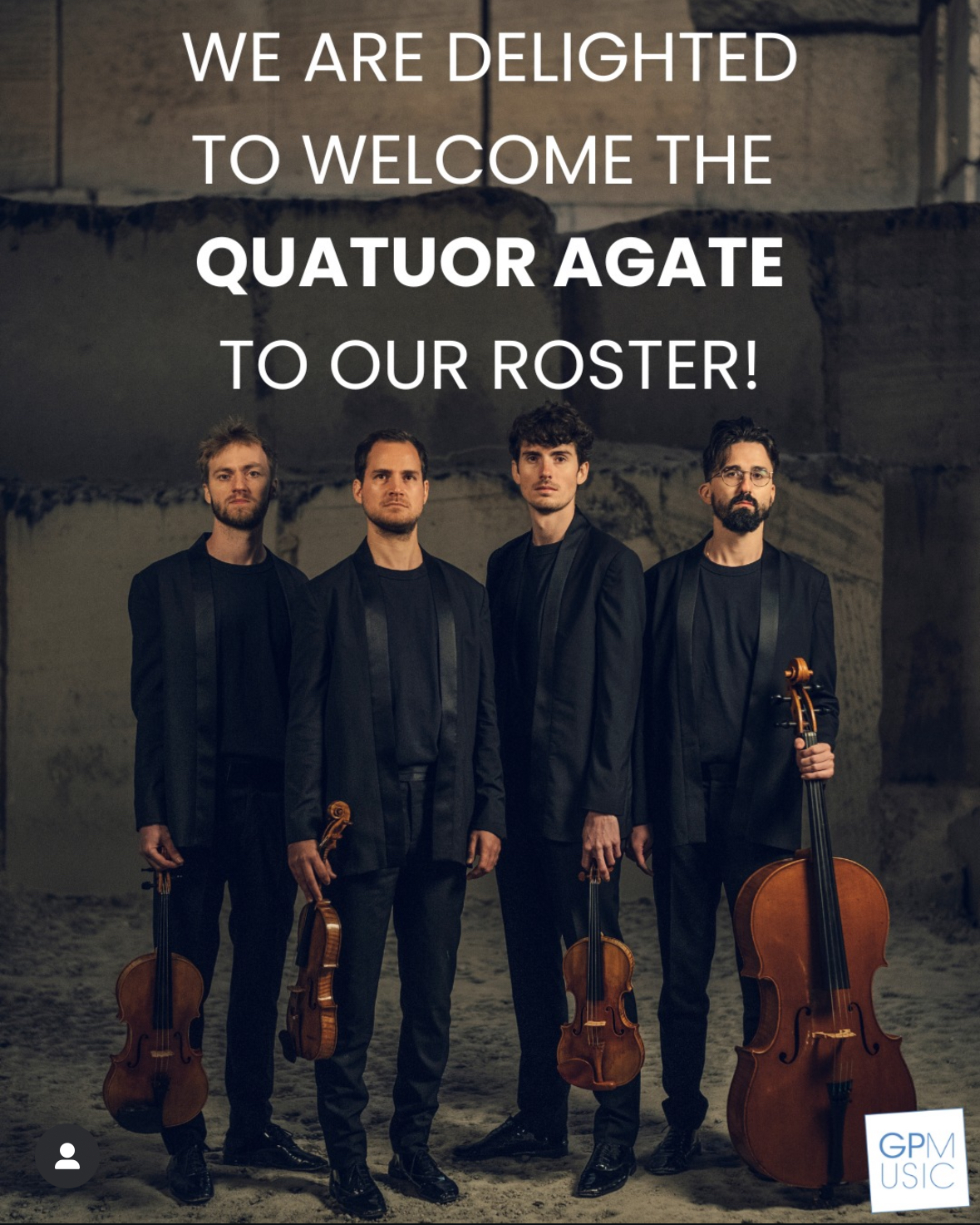 Le Quatuor Agate est enchanté de rejoindre la magnifique équipe de Grunau & Paulus Management à compter de cette saison 25/26. Nous avons hâte de partager avec vous cette nouvelle aventure !